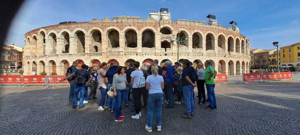 Zadnji postanek na poti proti domu je bil v Veroni. Mesto je slavno zaradi v Šekspirjevi drami opisani ljubezni med Romeom in Julijo ter po Areni, ki je prizorišče številnih (predvsem glasbenih) prireditev. Avtobus nas je pripeljal do parkirišča, od koder smo se peš napotili proti centru mesta. Bili smo presenečeni nad nepopisno turistično gnečo. Skozi ozke ulice smo se prebili do (domnevne) Julijine hiše. Šele tukaj smo se zavedali pravega pomena pojma »turistična gneča«.