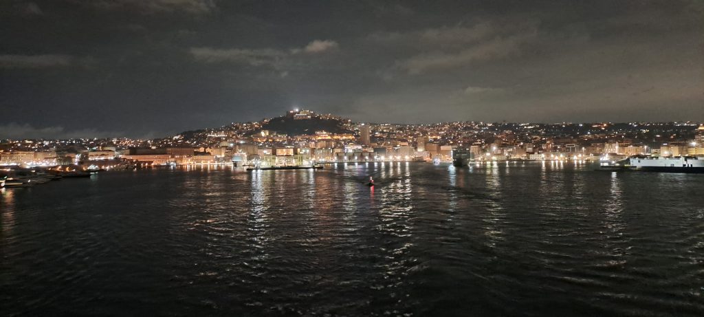 V nočnih urah smo, 25. 10. 2024, krenili z Jesenic in po nočni vožnji prispeli do Neaplja. Pot nas je najprej vodila v Pompeje, mesto, ki je bilo v obdobju antičnega Rima v velikem razcvetu. V letu 79 po Kristusu pa je mesto doživelo naravno katastrofo, izbruhnil je namreč vulkan Vezuv, ki je Pompeje zalil z do 12-metrsko plastjo pepela. Vsa živa bitja so se zadušila, vsa človekova dela, hiše, pohištvo, slike pa so ostala nedotaknjena pod vulkanskim pepelom. V večernem času smo se vkrcali na ladjo, se nastanili v kabinah, potem pa na palubi opazovali nočni Neapelj in na koncu utrujeni zaspali.